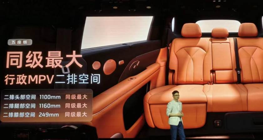 其次,灵活的双版本布局精准覆盖不同家庭结构的需求。大五座版本主打“行政级奢享空间”,第二排腿部空间超过一米,配合4D按摩座椅、B&O音响与超大全景天幕,营造出媲美豪华MPV的后排体验。而大六座版本则采用2+2+2布局,第二排独立座椅配备中央通道,方便第三排进出,同时第三排座椅并非“应急小板凳”,而是具备充足的腿部支撑与头部空间,真正实现了“六座皆舒适”。此外,所有座椅均支持电动调节与一键放倒,后备厢在六座状态下仍能容纳两个登机箱,放倒后排后可扩展至超过2000升的纯平储物空间,无论是家庭出游、商务接待还是户外露营,均能从容应对。