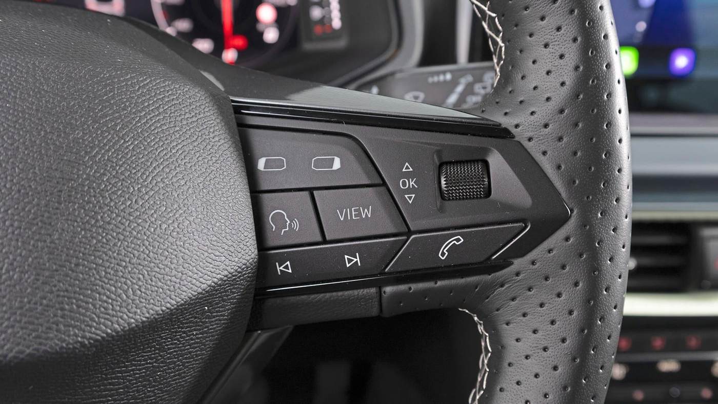 方向盘下方的两条宽幅辐条握感舒适,但略显单薄;粗壮的双离合变速杆仿佛从90年代的日本车上借来。座椅也没什么值得长篇大论的。坐垫偏薄,轮廓不够明显,坐着还算合适——至少在遇到弯道之前如此。值得一提的是,当进入弯道时,座椅肩部的侧向支撑意外地给力。