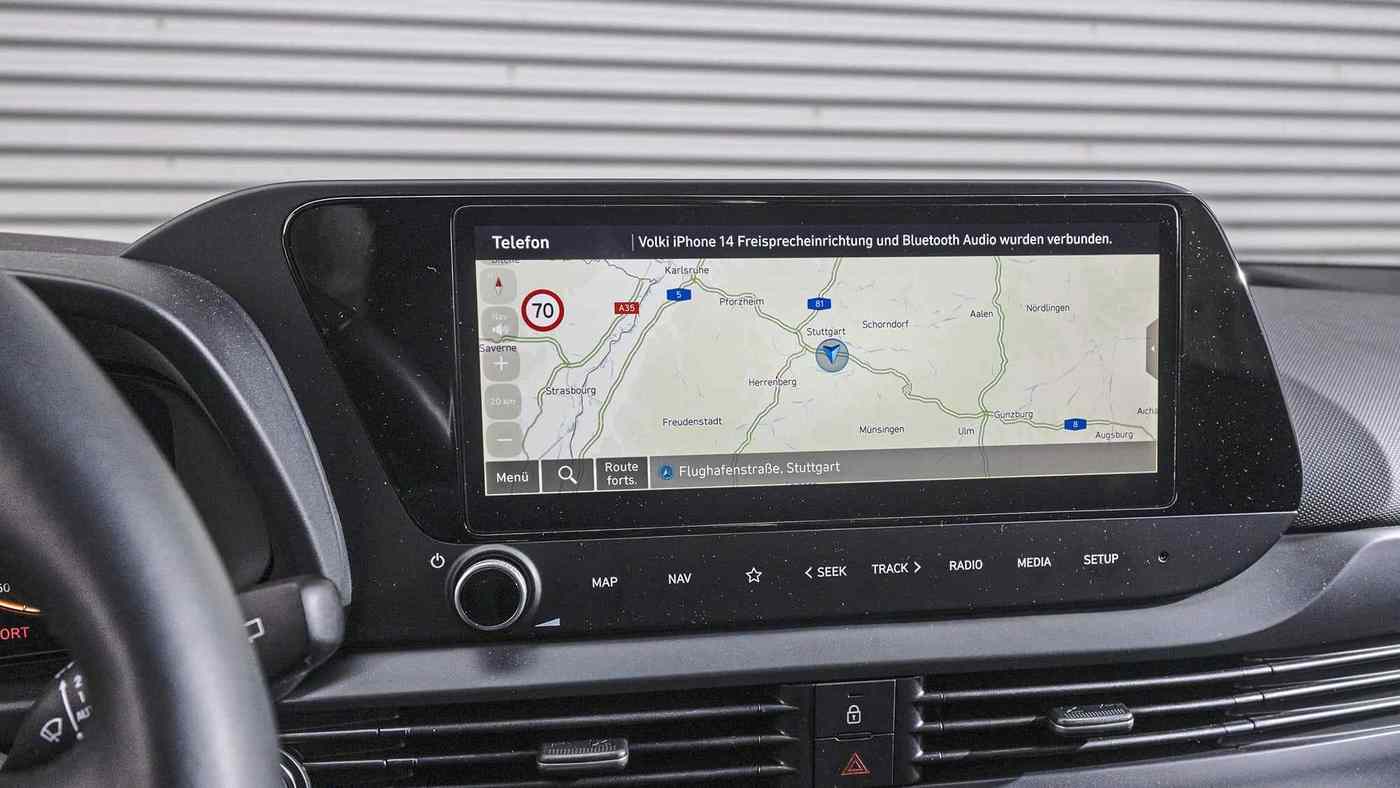 动力方面,BAYON搭载1.0升三缸发动机和48V轻混系统。测试车可输出100马力、200牛·米,但目前在最新价格表中,现代汽车只提供90马力、172牛·米版本——原因是欧7排放标准。价格保持不变:测试车Prime版30100欧元,与上一代100马力版本相同。尽管测试车多了10马力,但在试驾中,BAYON仍显吃力,尤其是轻微上坡或市区加速时。7挡双离合偏向舒适,虽然有运动模式,仪表盘会变红,但新的换挡策略更多显得努力而非运动。