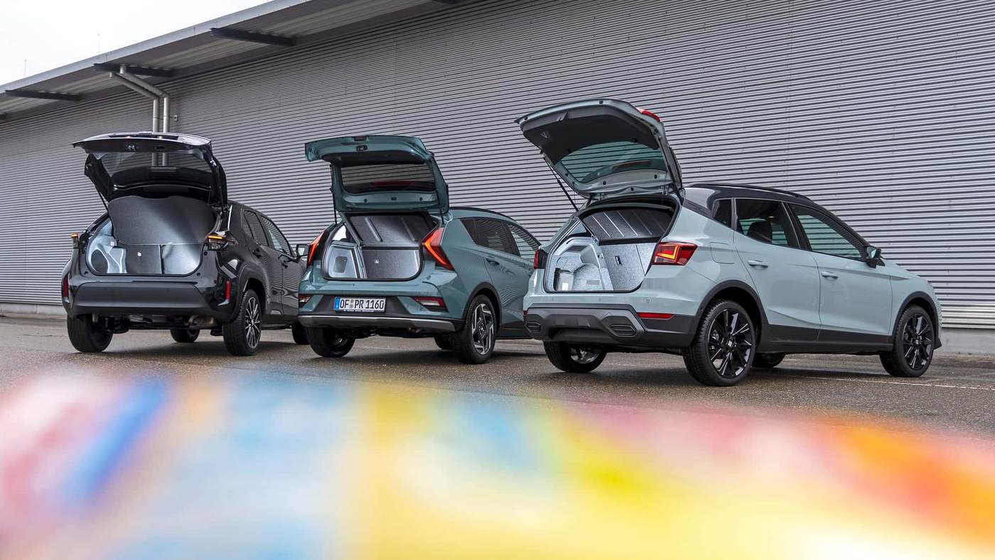 先来看现代汽车BAYON。它已经是第二次在我们这里尝试夺取对比测试冠军——不久前,它在与大众汽车T-Cross的对比中仅以微弱差距落败。这一次,它将迎来两位新对手:一是经历了第二次全面改款的老将西雅特Arona,二是已有四年历史、在2024年春季进行了更新的丰田YARiS Cross,通过混合动力与无级变速组合呈现技术上的有趣对比。