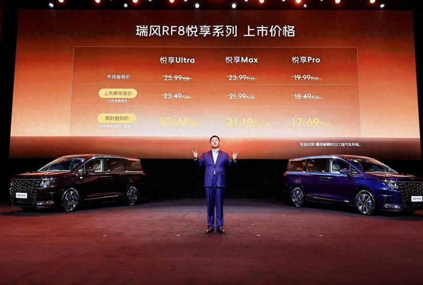 2026年3月28日,在瑞风用户之夜的温情氛围中,瑞风RF8悦享系列正式上市。新车共推出Pro、Max、Ultra 三款配置版本,限时抢购价17.69万元起。作为瑞风品牌25周年献给百万用户的“深情家书”,这款车承载着瑞风对MPV品类的深刻理解,更回应了新时代用户兼顾事业与家庭的双重期待。