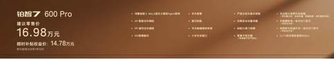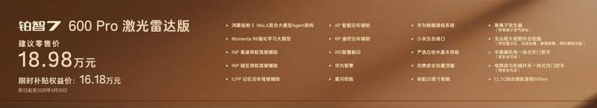 600Pro激光雷达版限时补贴权益价仅需16.18万,一步解锁Momenta R6强化学习大模型带来的丝滑高阶智驾,融合丰田超10项安全标准,好用又安全,交付即享高速领航、城区领航、记忆泊车等全场景智驾功能,终身免费,后续还能直接OTA升级至R7强化学习世界模型。