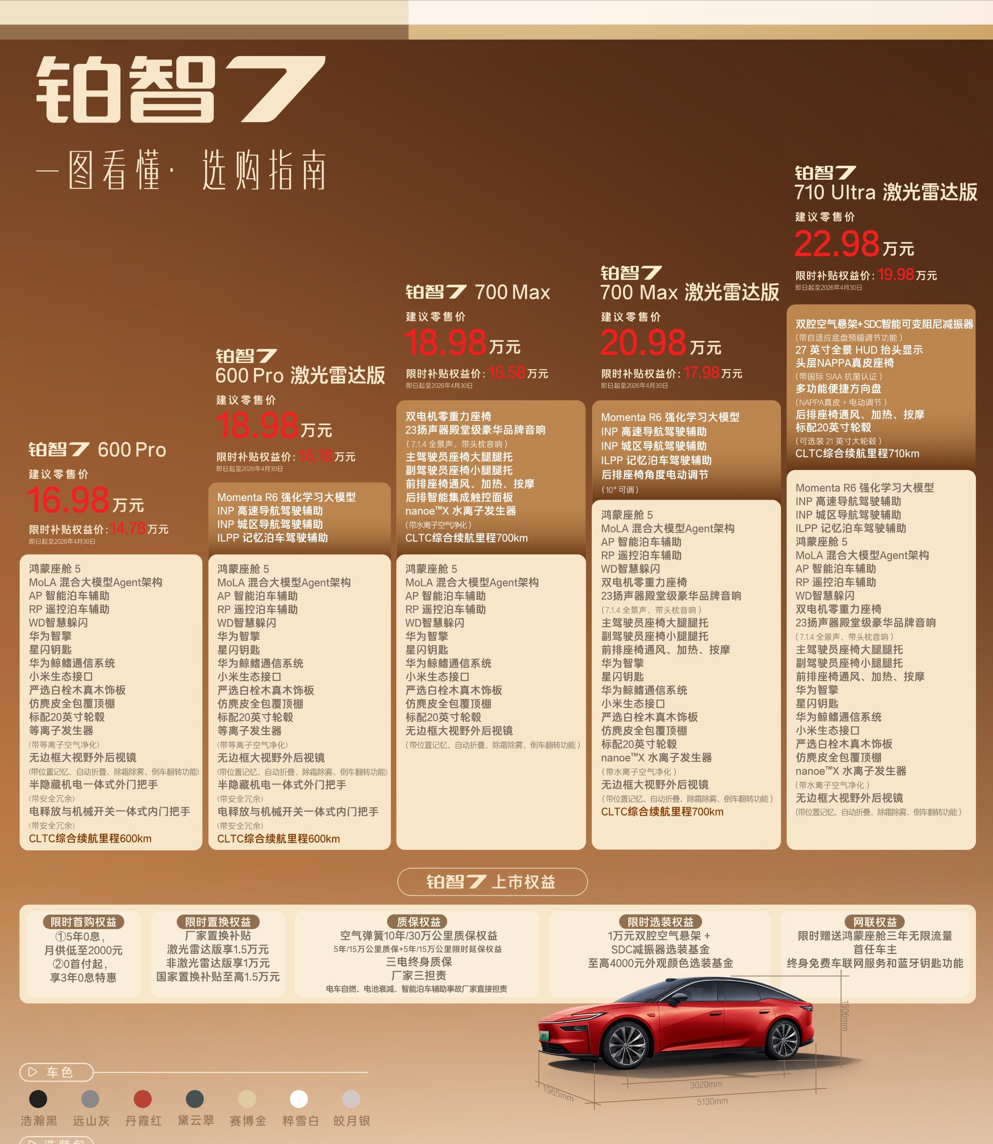综合补贴权益后,铂智7全系进入20万内!过往20万级纯电家轿市场虽然处于堆料内卷阶段,仍存在长续航、高阶智驾和豪华配置三选一或三选二的困境,铂智7完美解决这一痛点,以超豪华配置+全球品质+超值定价彻底打破用户选择的“三角困局”。