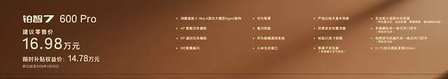 铂智7600Pro版,版本基础配置不基础,入门即豪华,限时补贴权益价14.78万。同价位最大尺寸旗舰轿车,标配内置MoLA架构的鸿蒙座舱5,具备类人化智能交互,搭载带智能泊车的L2级智驾、华为智擎、尊界同款星闪钥匙、纯天然实木内饰和座椅通风加热、20寸轮毂等超15项豪华配置。