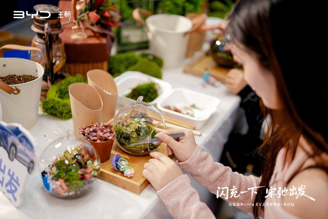 在自由品鉴环节,来宾们沉浸于“闪充能量区”与“掌心绿意”微景观所营造的科技与生活交融的氛围中,零距离感受宋Ultra EV在细节做工、智能座舱交互及豪华质感上的非凡魅力,亲身领悟其所代表的智慧、优雅且有温度的新生活方式。