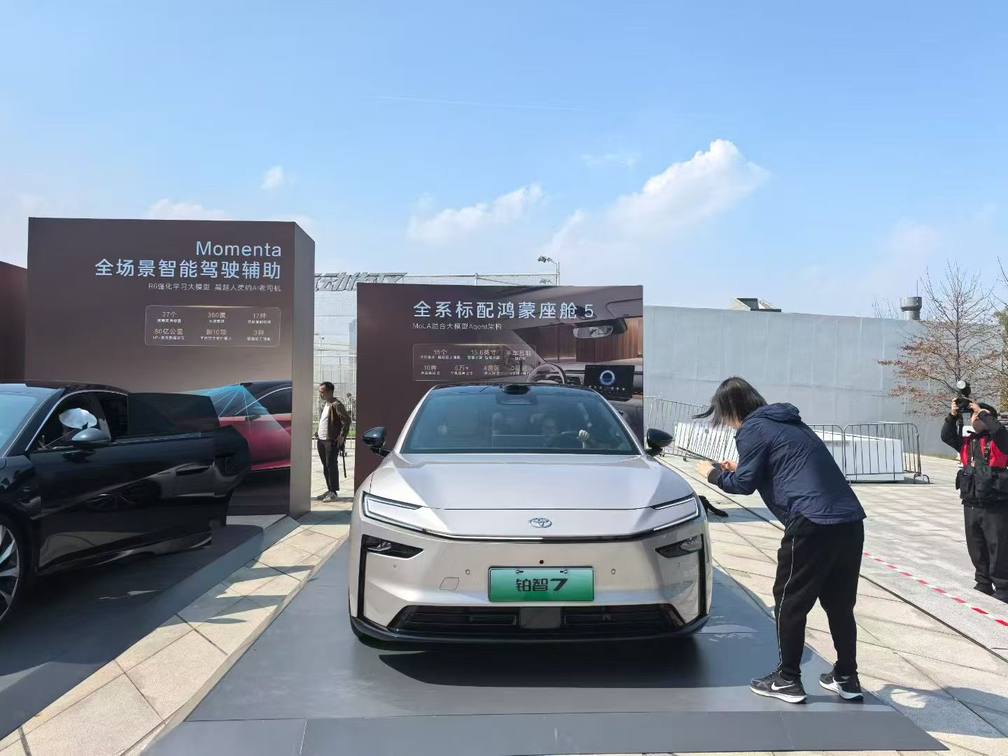 具体看来,广汽丰田铂智7全系配备了鸿蒙座舱5、除入门版外配备了Momenta R6飞轮大模型高阶辅助驾驶系统和华为Drive One电驱。