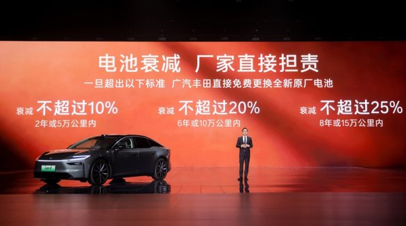 针对电池衰减顾虑,铂智7植入丰田“全周期0析锂”安全要求,搭配电压保护策略,延长电池使用寿命。广汽丰田承诺,电池2年或5万公里内衰减超10%、6年或10万公里内衰减超20%、8年或15万公里内衰减超25%,厂家直接担责并免费更换全新原厂电池。