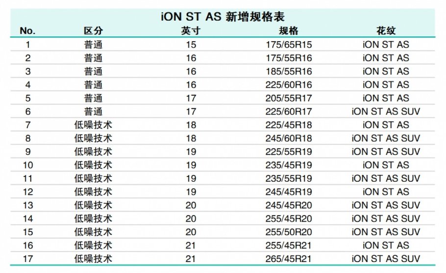 - 4月1日,韩泰iON ST AS新能源轮胎新增17款产品规格