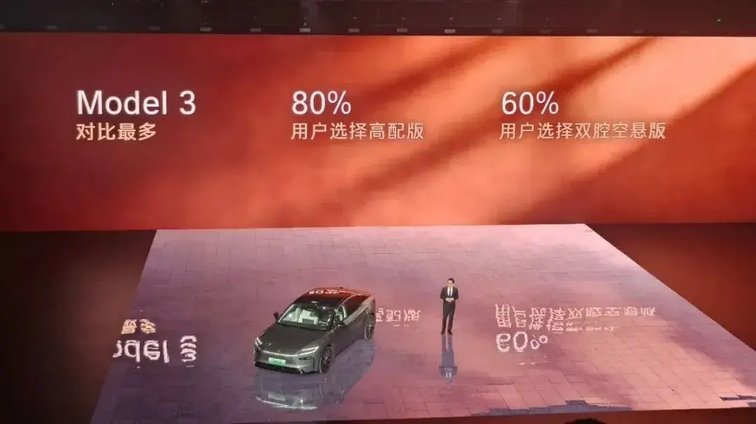 而且,从预售数据看:一是用户对标车型中,特斯拉model 3占比最高,这意味着铂智7已成功破圈,正式进入主流新能源消费群体的视野;二是80%的用户选择高配版,60%的用户选择双腔空悬版,充分印证了铂智7的产品配置,精准匹配了消费者的升级需求。