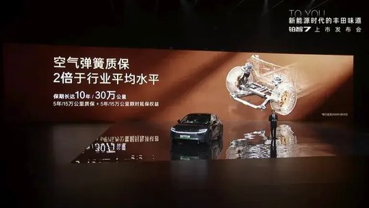 同样的承诺也体现在双腔空悬的质保上,目前行业普遍提供5年/15万公里质保;在此基础上,广汽丰田限时追加了5年/15万公里质保权益。叠加之后,铂智7的空悬质保期长达10年/30万公里,是行业平均水平的两倍!
