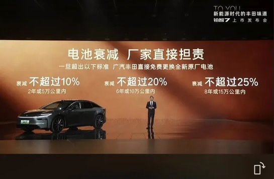 事实上,从铂智3X开始,广汽丰田就推出来行业至今仅有的“三电质保”的政策。当前行业普遍只要求8年或16万公里内,电池衰减不超过30%,广汽丰田主动提高标准、细化承诺,要求2年或5万公里内,电池衰减不超过10%;6 年或10万公里内,衰减不超过20%;8年或15万公里内,衰减不超过25%。