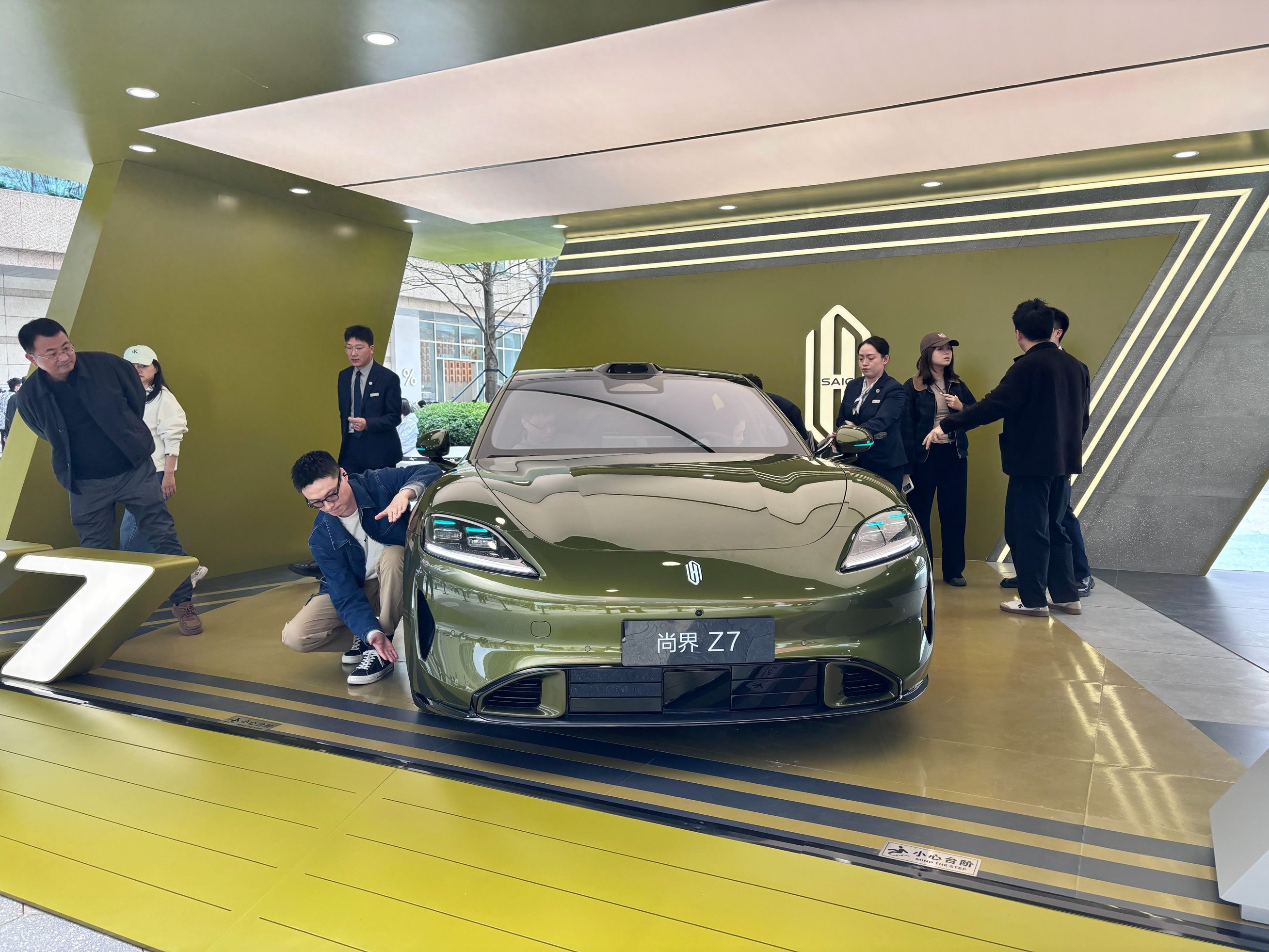 驾仕派在成都万象城鸿蒙智行门店实探发现,成都目前唯一一辆展车是外观为琥珀金绿、内饰为闪金黑的尚界Z7 Ultra版。有意思的是,展车并未放置在门店内,而是直接摆放在店外紧邻小米SU7的展厅进行外展,且参观需要排队。