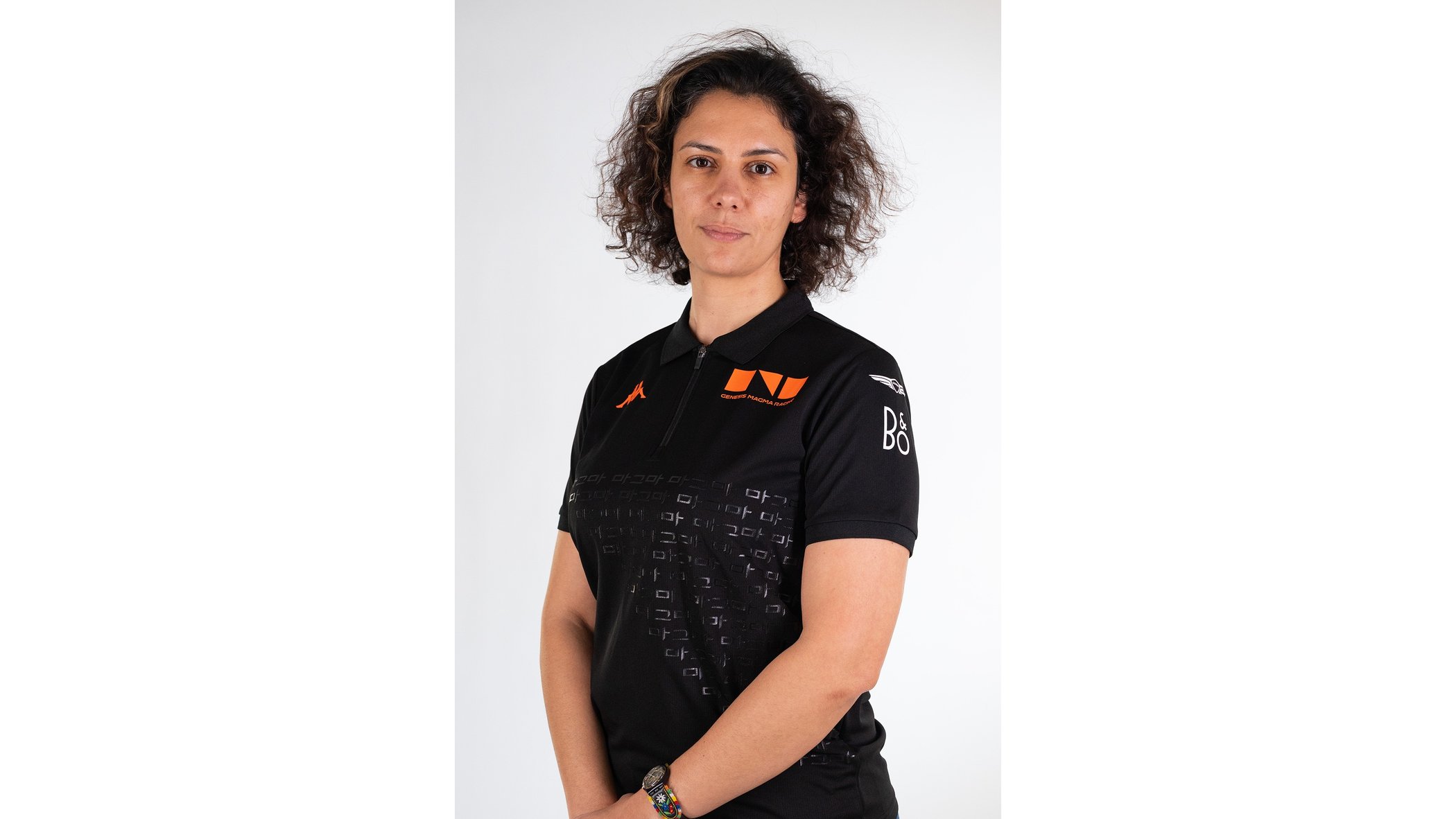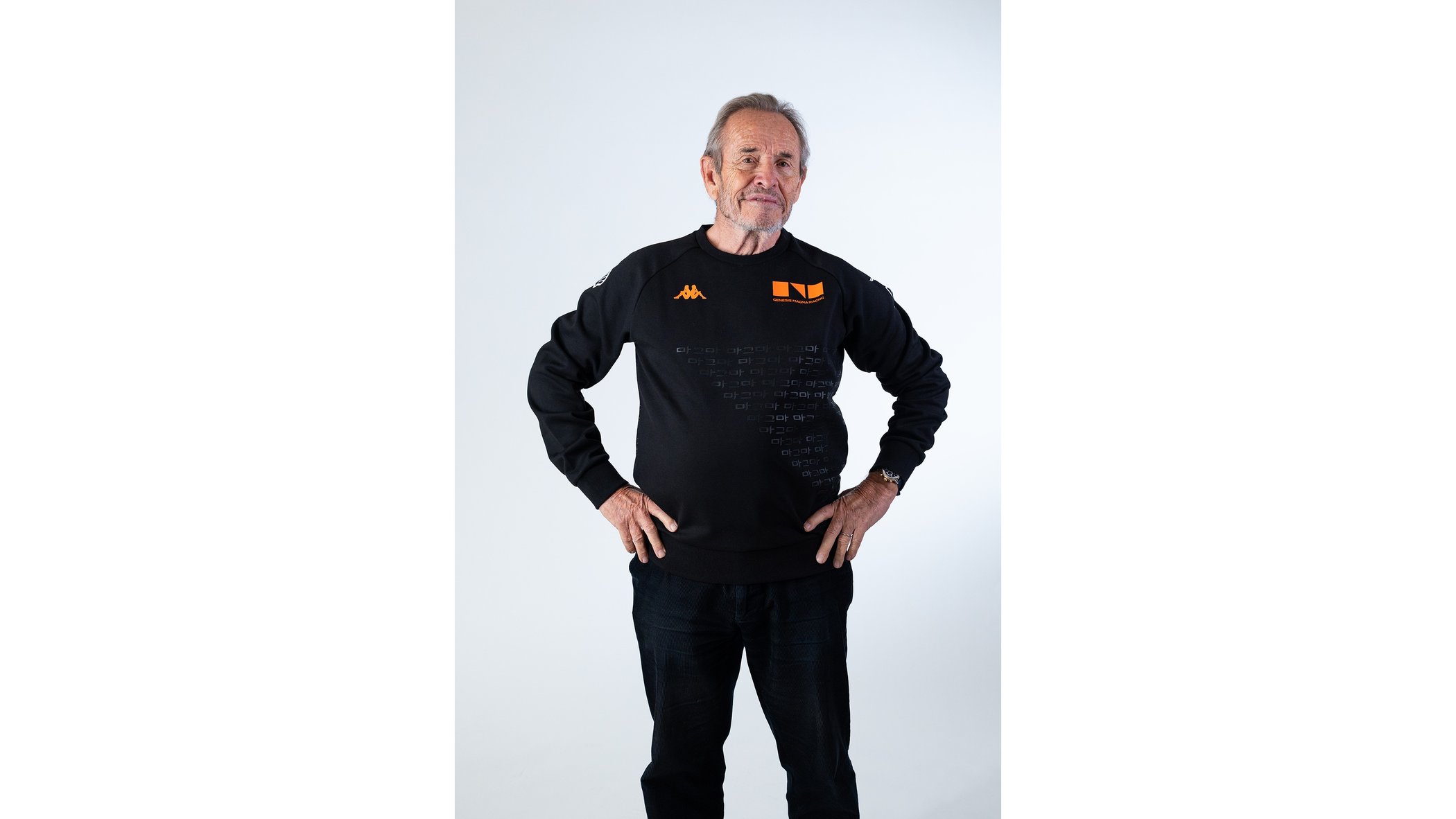 在WEC围场,捷尼赛思Magma车队的成员辨识度极高,他们身着以黑色与熔岩橙为标志性配色的队服出现。这套服装由车队官方服饰合作伙伴Kappa倾力打造,以标志性的捷尼赛思Magma几何图形为核心设计,同时将作为其灵感来源的韩文字体以同色系暗纹的形式巧妙融入,在视觉上低调而深远地呼应着品牌“独具韩韵”的核心理念。