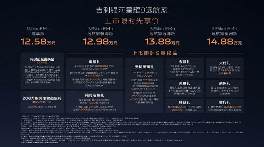 限时12.98万起售,吉利银河星耀8远航家上市,续航智能全面升级