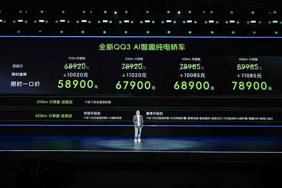 3 月 30 日,2026 全新奇瑞 QQ3 正式迎来上市!新车官方限时价58900 元 - 78900 元,相较于此前公布的68920元 - 89985元预售价格,全系大幅下调,最高直降超万元,以极具诚意的上市惊喜价,搭配七重超值宠粉权益,彻底颠覆7万级纯电小车市场格局。