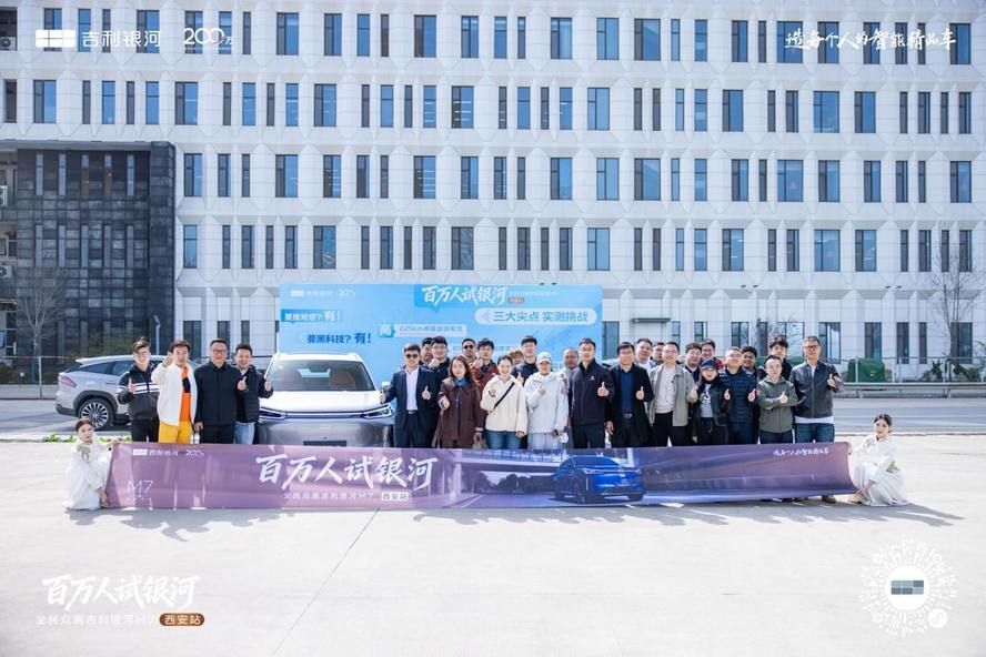 3月22日,吉利银河“百万人试银河”全民众测活动西安站在长安大学车联网与智能汽车试验场正式举行。作为交通运输部首批认定的国家级自动驾驶封闭测试基地,该场地拥有2.4公里高速环形跑道、1.1公里直线加速道及超万平米操纵稳定性广场,为本次全民众测提供了专业、安全且多元的验证环境。百余位来自西安本地的家庭用户、汽车爱好者及媒体代表,共同参与了对吉利银河M7的全维度动态体验,重点聚焦其被官方称为“主流电混SUV王牌操控”的核心实力。