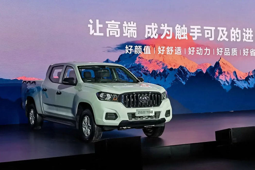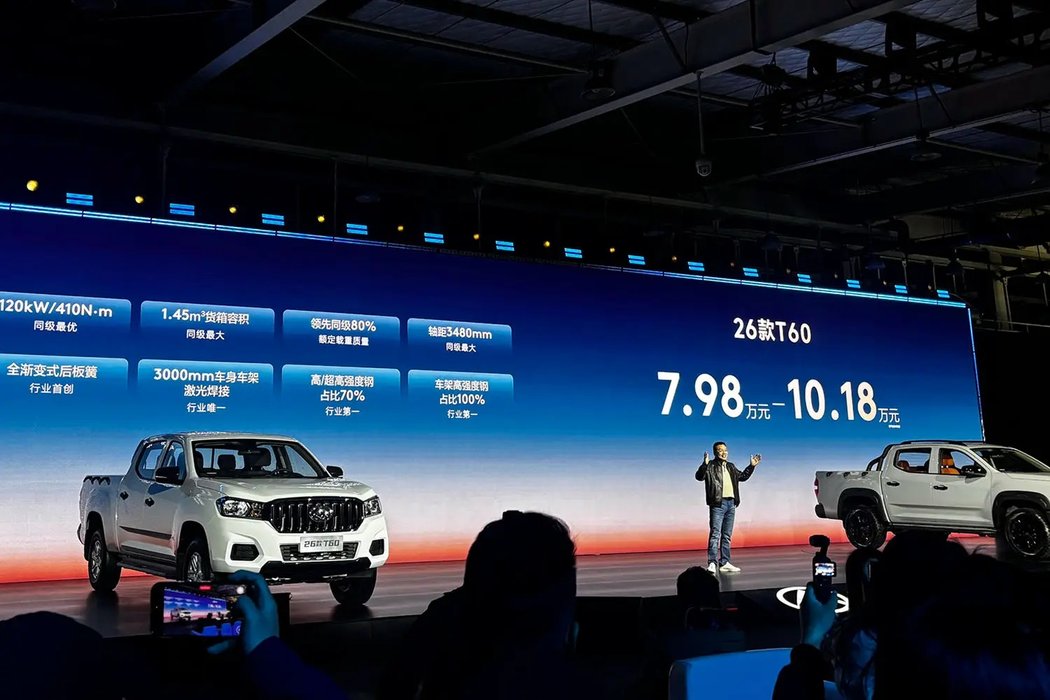 同时,考虑到工具皮卡能装才能更好创富,2026款T60货箱容积最大可达1.45立方米,为同级最大;搭载行业首创全渐变式后板簧技术,高强度钢和超高强度钢占比达70%,额定载重领先同级超80%,最大拖拽质量3.0t,并经历了超200万公里常规耐久+20万公里极端环境耐久试验,兼顾了大承载与高可靠性。