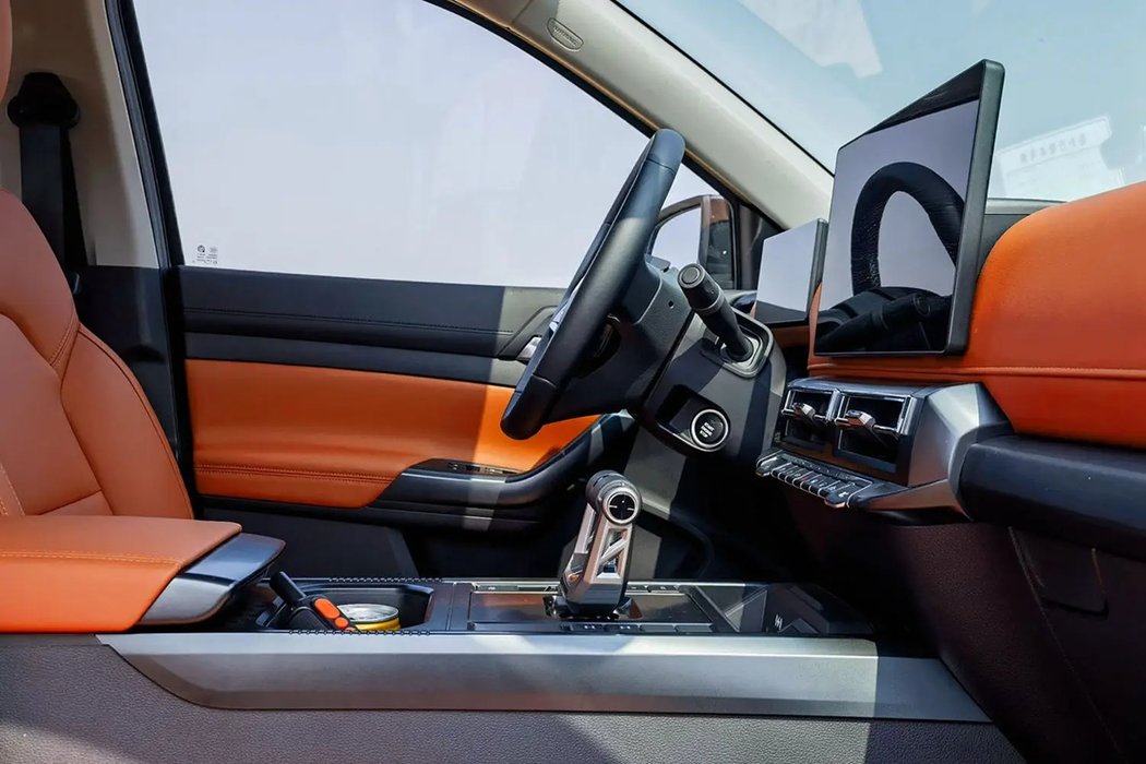 电池方面,新车搭载自主开发88kWh电池,能量密度超150Wh/kg,CLTC续航里程可达515km,百公里电耗17kW·h,相比传统皮卡用车成本更低。同时,新车支持快充,从20%充至80%只需43分钟,充满电则需要1.5小时。另外,新车还支持6.6千瓦外放电功能,可满足野外作业等场景随时用电的需求。