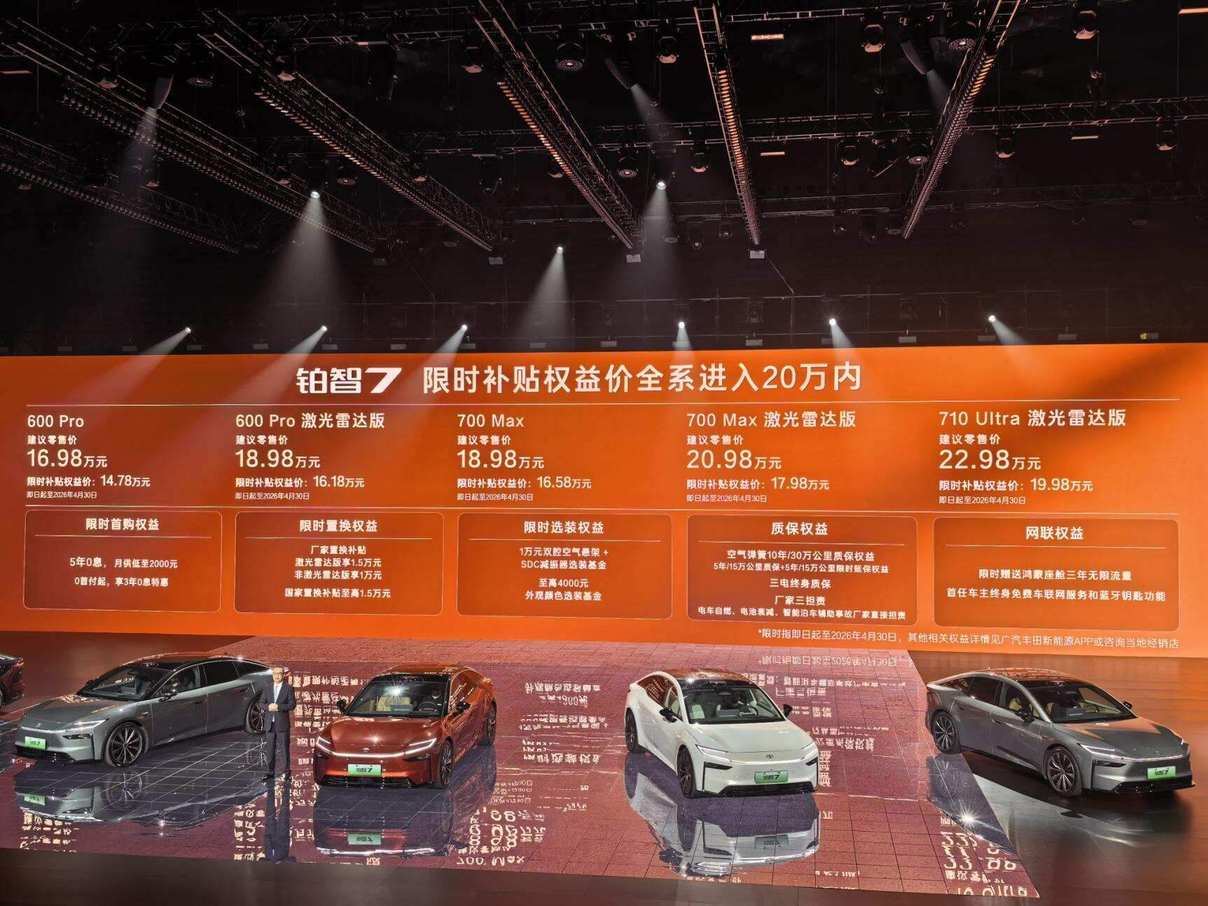 丰田铂智7此番重磅登场,一举击破合资纯电车型智能短板、定价虚高的行业桎梏,以亲民的定价策略,叠加丰田的精湛品质、华为的前沿智能科技,以及超越同级的舒适体验,无论是首次购车的家庭刚需、升级换车的进阶需求,还是新手的日常通勤代步,它均能精准契合、完美胜任。