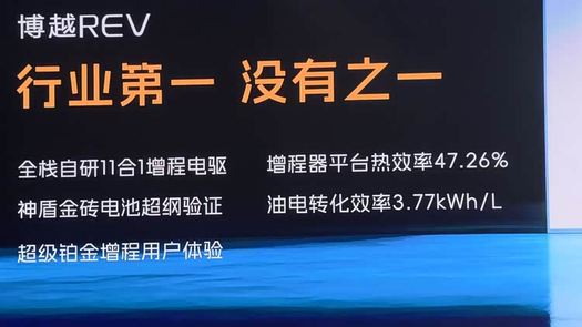博越REV搭载1.5L四缸专用增程器,匹配吉利行业首发的11合1全栈自研增程电驱,增程器热效率达47.26%,油电转化率为3.77kWh/L,WLTC亏电油耗到了4L级别。11合1增程电驱集成11个核心部件,轴向空间占用减少15%、整机重量降低12%,可实现增程器无感启动,驱动电机最大功率160kW、峰值扭矩320N・m,在-40℃至60℃温域内可保持稳定动力输出。