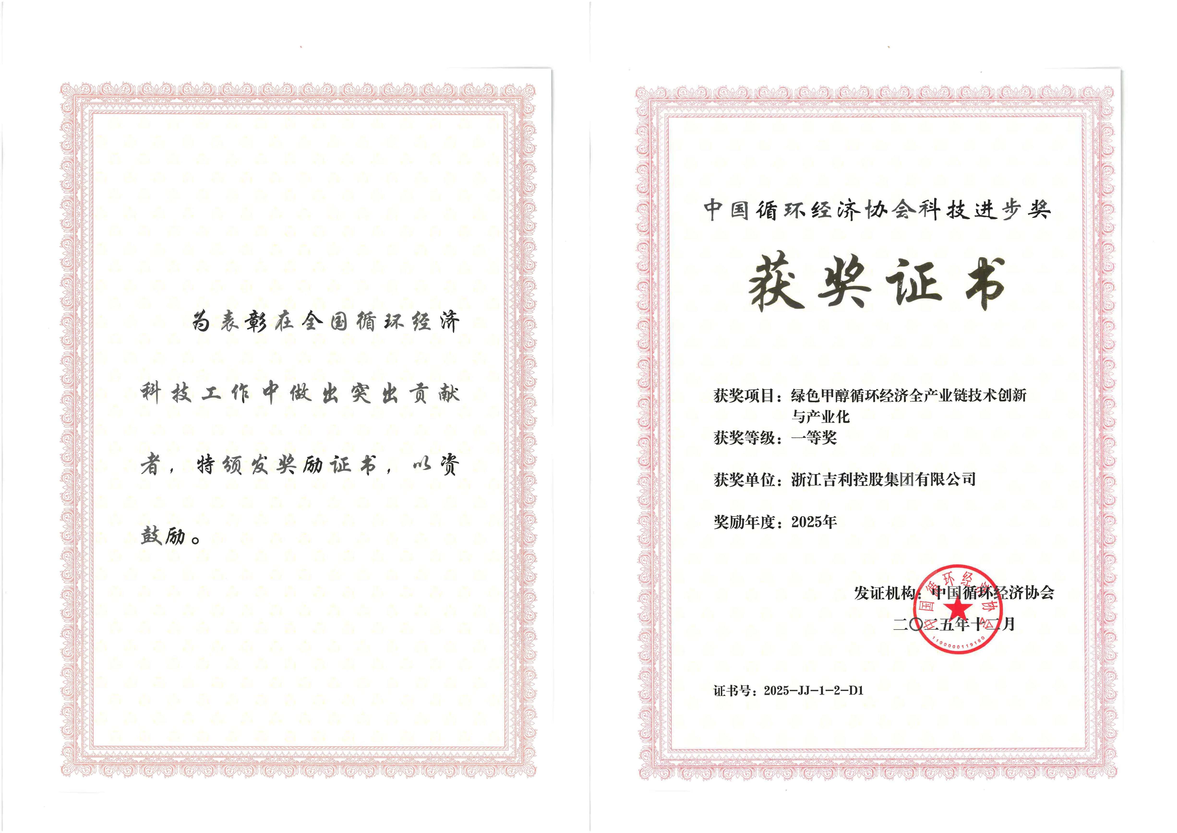 此次获奖项目,正是吉利控股集团携手上下游产业链,以甲醇燃料、甲醇加注、甲醇动力、甲醇汽车为核心,实现了“醇-站-动-车-捕”绿色甲醇循环经济的全产业链闭环的实践见证。