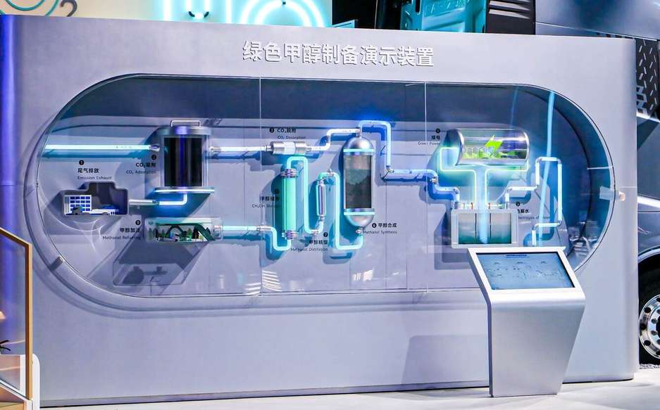 此外,在碳捕集方面,吉利控股集团创新性地研发了移动源碳捕集系统(吉利碳仓),将碳捕集技术应用到交通运输行业,并与CO₂加氢制甲醇项目相结合,实现碳循环资源化利用和甲醇汽车的近零排放。