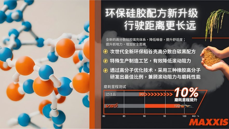 首先是低滚阻与耐磨性能的兼顾,这也是VS6的一大核心卖点。它采用了环保硅胶配方,并结合三种高分子橡胶混合技术,在实际使用中带来的变化是:滚动阻力降低约8%,使用寿命提升约10%。