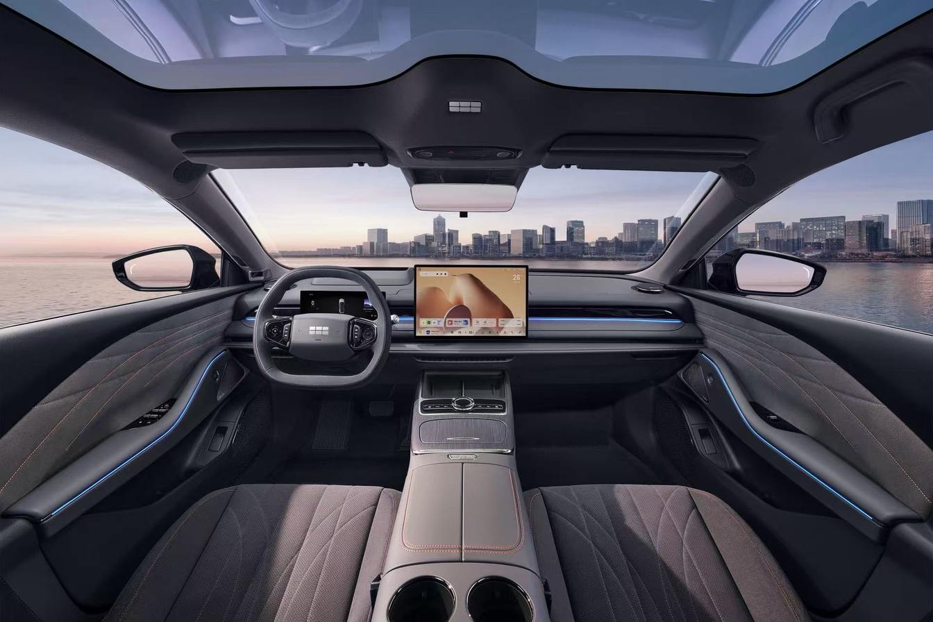 在动力与能耗上,新车搭载雷神EM-i AI电混系统(1.5L Evo+ E-DHT)凭借热效率高达47.26%的全球量产最高发动机,及星睿AI云动力2.0的智慧能量管理,百公里馈电油耗低至3.32L(CLTC),为5米级轿车最低——其满油满电综合续航高达1700km+,尽可让用户自在远行。