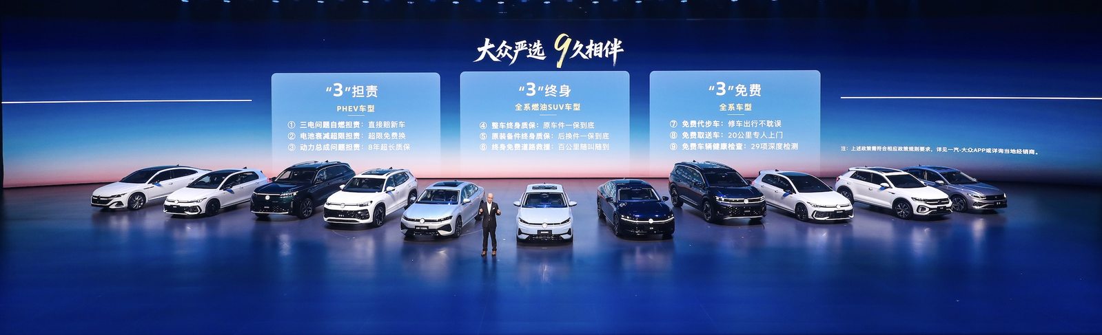 作为拥有35年积淀、超3000万客户基盘的合资标杆企业,一汽-大众依托雄厚实力与完善的服务体系,将严选品质化作长久陪伴,为客户带来大厂独有的确定感。在本次发布会上,一汽-大众还重磅推出“大众严选 9久相伴”专属承诺,依托“三担责、三终身、三免费”9项承诺,为客户提供全生命周期可靠保障,以十足诚意彰显领军品牌的责任与担当。