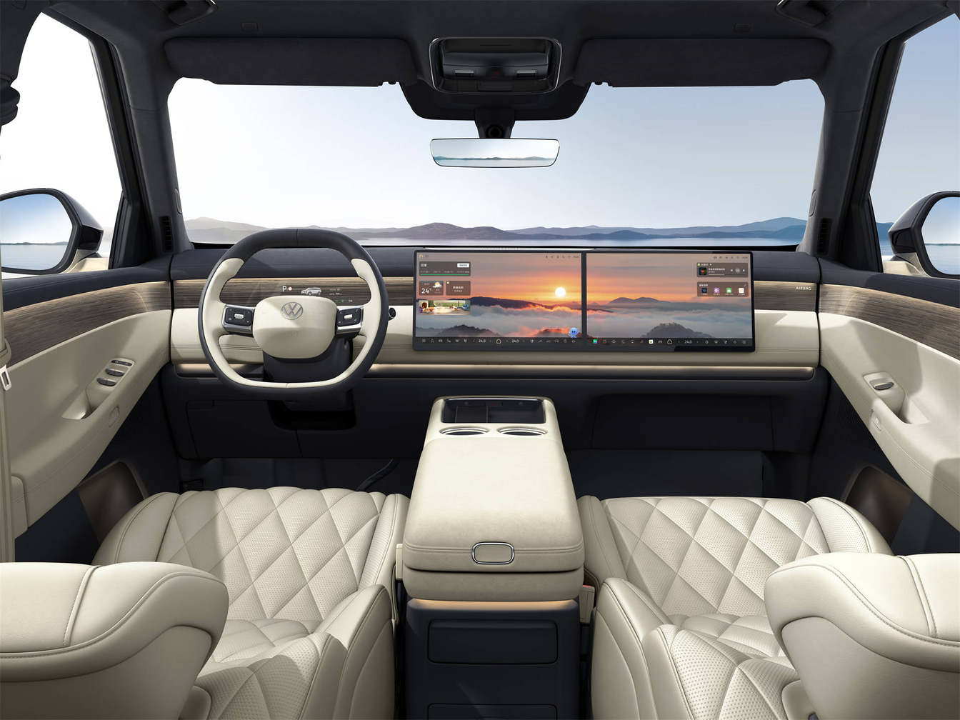智能化方面,大众和其他合资品牌一样,选择拥抱中国方案。车内不仅配有15.6英寸2.5K中控双联屏、21.4英寸3K后排吸顶屏,还在二排门板内嵌了隐藏式控制屏,既兼顾了科技感,又保证了实用性。
