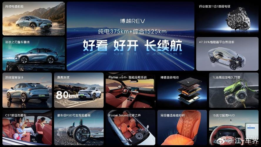 博越REV精准布局A+级SUV细分市场,以 “好看、好开、长续航” 为核心优势,实现375km纯电续航、1525km综合续航的越级表现,全面覆盖用户城市通勤、短途跨城、长途出行等多场景需求,推动长续航增程技术加速普及。博越REV的全球上市,不仅进一步完善了博越家族智电时代产品矩阵,更以硬核技术实力,彰显中国汽车品牌持续向上的全球竞争力。
