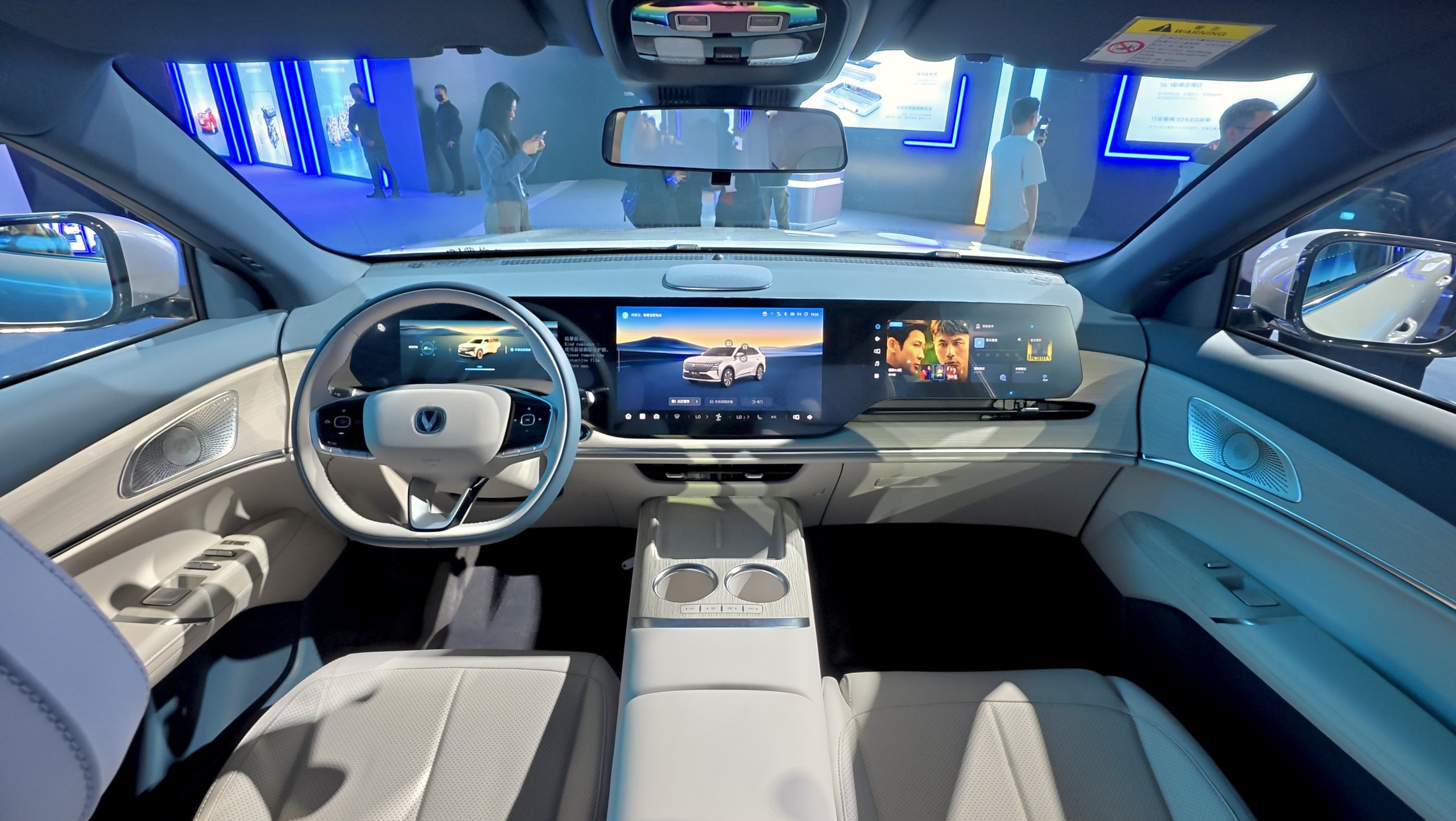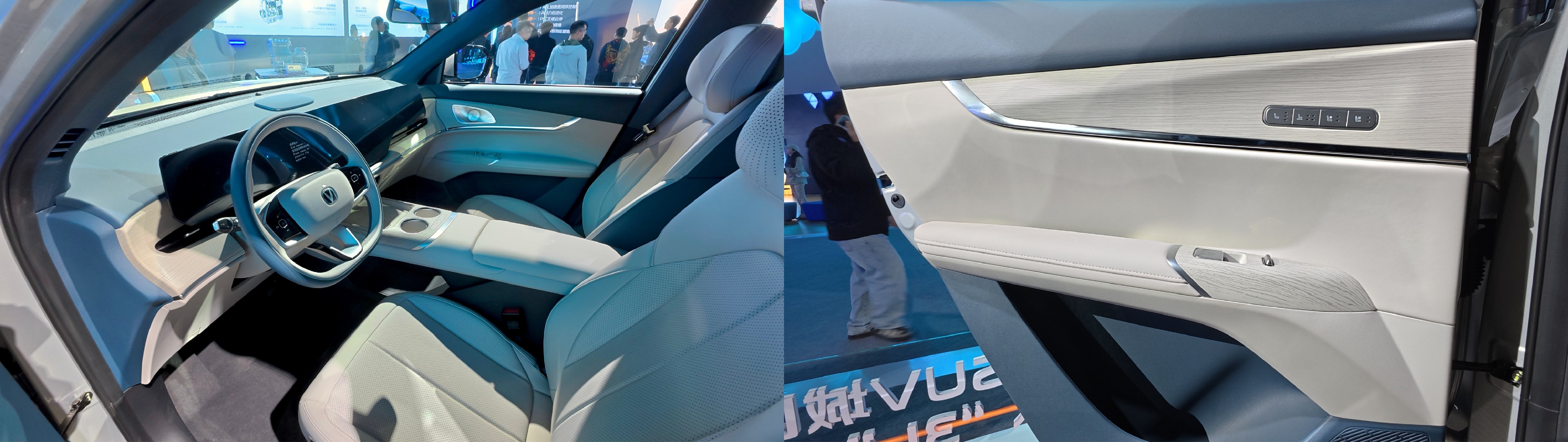 内饰方面,实车显示新车延续了燃油版车型的布局,采用由10.25英寸全液晶仪表、14.6英寸中控屏和12.3英寸副驾娱乐屏组成的三联屏设计,并新增“暮雪青山”内饰配色。