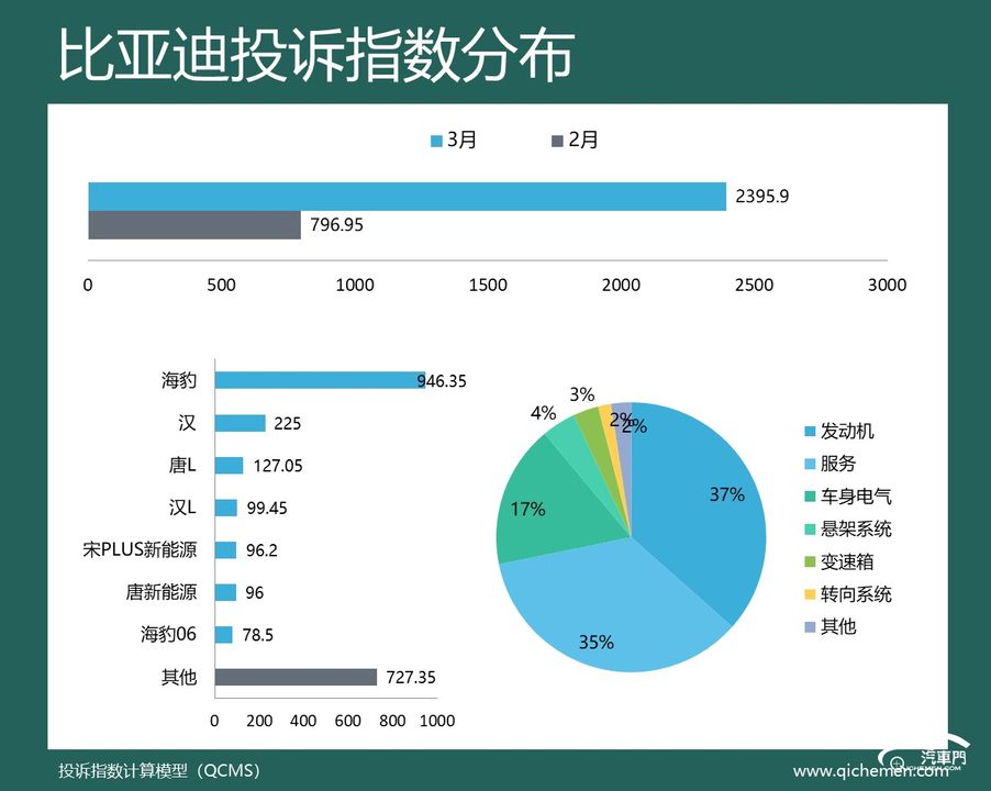 汽车质量投诉点评:3月份,比亚迪的投诉指数逐渐向正常水准回升,月度整体投诉指数达到了2395.9。这背后,升级后电机功率下降成了最大推手。海豹、海豹07、海豹06等车型的车主普遍反映,升级最新系统之后,电机功率明显下降,部分车型功率锁了1/3甚至一半,已经严重超出了正常水准。进而,大量车主集中进行投诉。除了新的集中投诉外,新车降价和车机不升级问题本月仍然引发了部分车主的投诉。