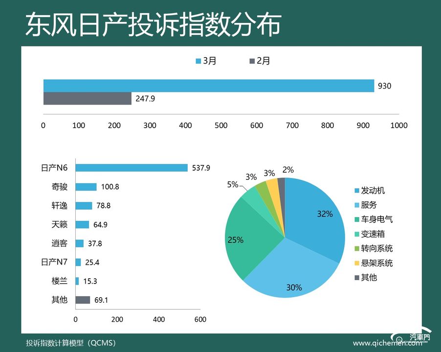 汽车质量投诉点评:本月,东风日产投诉指数飙升了近三倍,成为TOP10中投诉增幅最大的车企,因此顺势攀升到了本月投诉榜第二位。从投诉反馈来看,日产N6因驱动电机油泵和钥匙故障导致的召回引发了车主的集中投诉。据车主反馈,因产品质量问题,东风日产于今年1月起召回部分N6车型,更换钥匙及驱动电机油泵部件。然而,更换驱动电机油泵需拆车、放机油,准新车拆件或影响保值率,已有车主获得了万元以上的关怀补贴,因此要求厂家赔偿,但赔偿申请并未获得同意。于是,很多车主纷纷投诉。