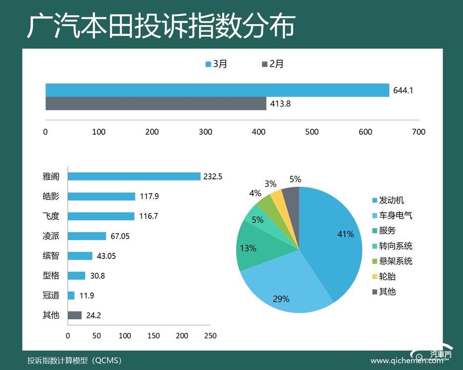 汽车质量投诉点评:由于多家车企本月投诉指数暴增,广汽本田本月滑落到了车企投诉榜的第五位。从投诉数据来看,广汽本田本月投诉指数增幅相对较低,而且也未出现集中投诉,投诉依然以老问题为主。飞度发动机异响、皓影遮阳帘卡口断裂、凌派发动机正时皮带掉毛仍然是广汽本田被吐槽最多的三个问题。