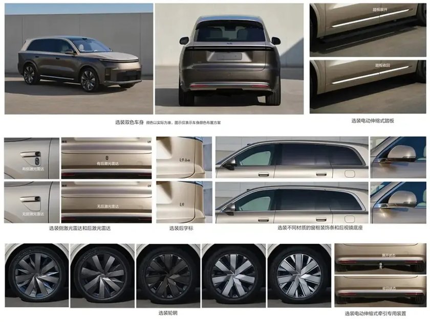 外观设计方面,新一代理想L9依旧沿用品牌标志性的家族式设计风格,前脸配备ABB像素级照明大灯与特色三色星环灯组,让整车前脸更富立体层次与科技氛围。车身侧面线条舒展凌厉,装配22英寸大规格轮毂,两侧车身还搭载侧向固态激光雷达,大幅提升了复杂道路环境下的感知精度。车尾设计偏向简约大气,采用贯穿式尾灯造型,牌照区域为内凹式布局,保险杠区域整合智能驾驶辅助硬件,进一步提升了尾部的整体协调性。