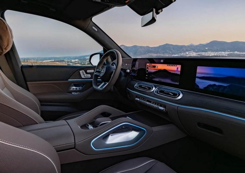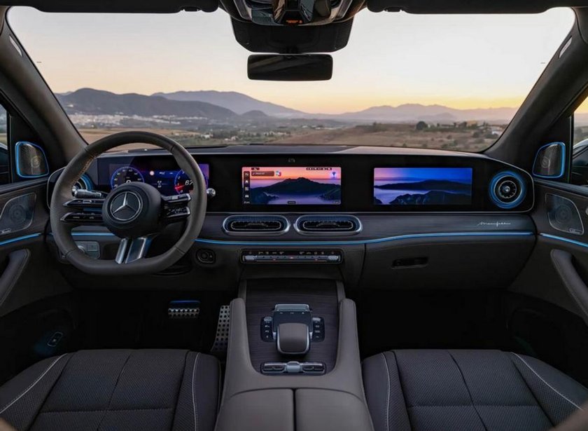 内饰设计依然发挥稳定,兼顾科技感与豪华感。搭载MBUX Superscreen超联屏,集成了12.3英寸仪表、14英寸中控屏与14英寸副驾屏,同时保留了实体按键。