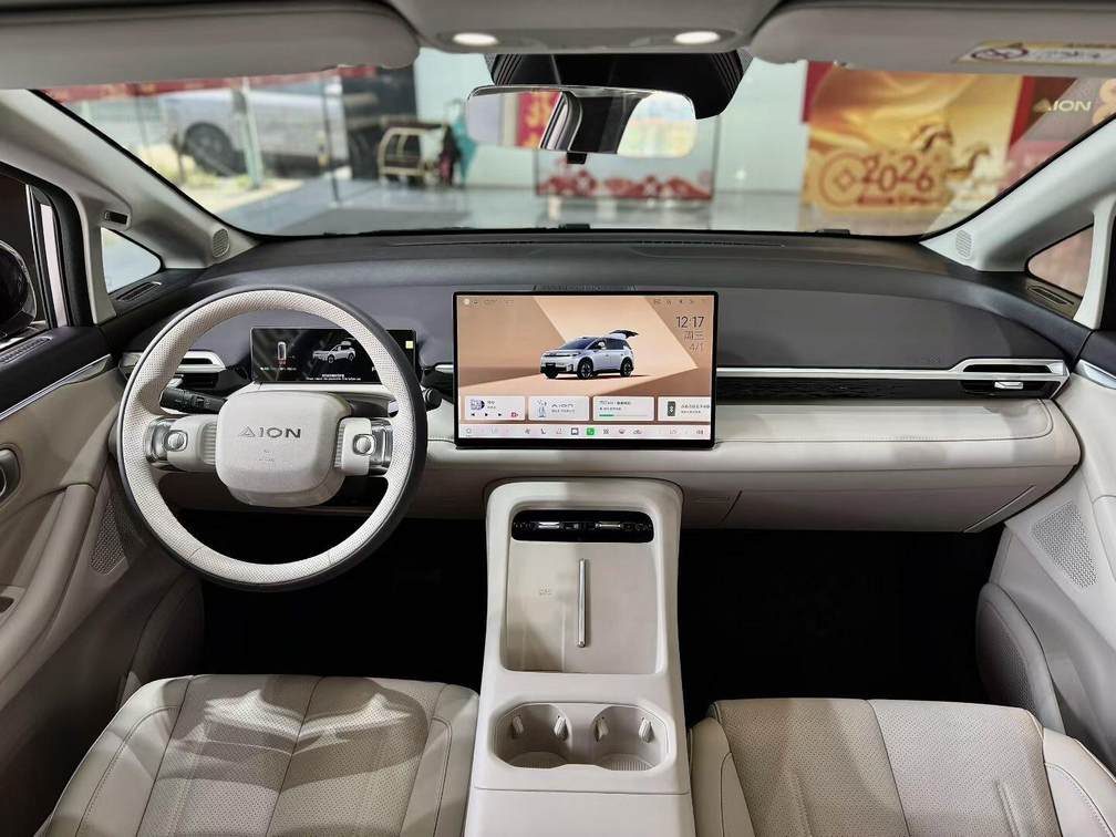 内饰采用与埃安RT类似的设计语言,简洁且多层次感的环抱式座舱内配备15.6英寸2.5K悬浮式大屏以及矩形全液晶仪表屏,并搭载ADiGO 6.0智能座舱,支持AI语音大模型、华为星云空间、手车互联以及多场景模式等功能。
