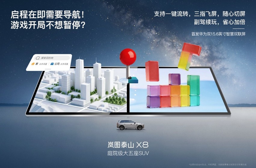 3月31日,岚图汽车官方宣布,岚图泰山X8将首搭华为双15.6英寸大双联屏。这意味着,岚图泰山X8先于“境”“界”,成为行业首款搭载华为双联屏的车型,以领先者姿态,重新定义高端家用旗舰的智能标杆。