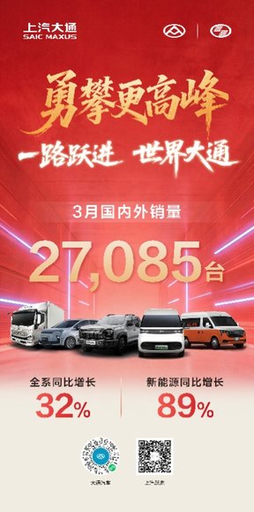 【上汽商用车3月销量全线突破】