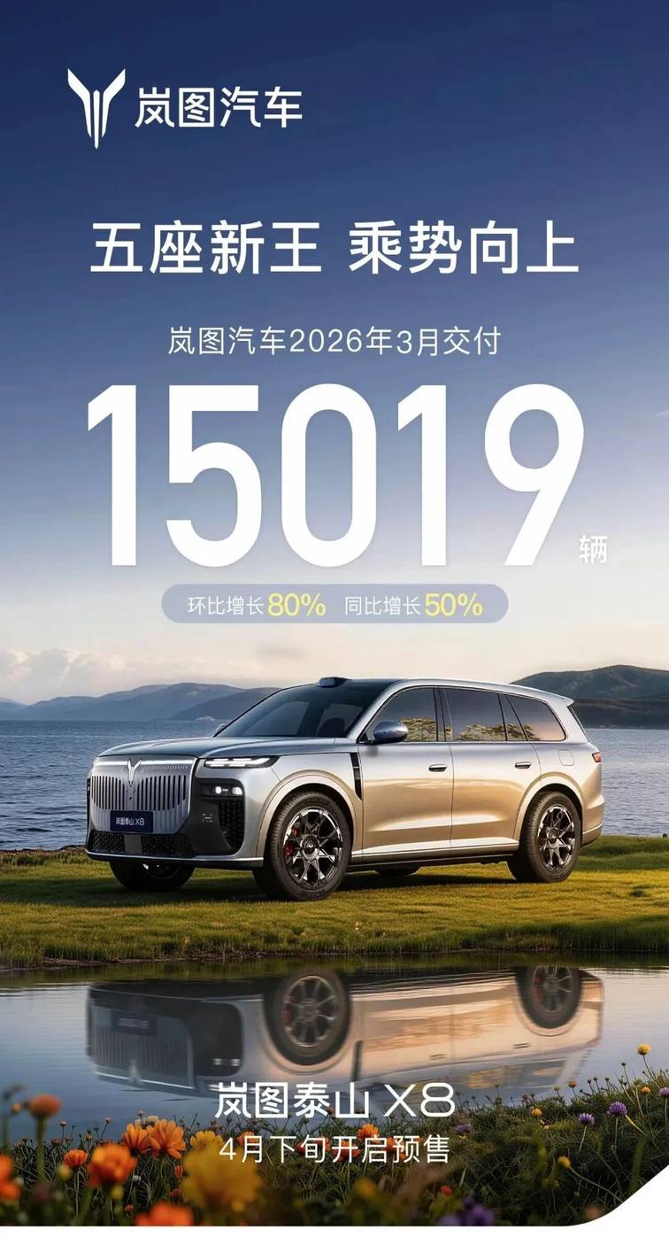 3月31日,岚图汽车官方宣布,岚图泰山X8将首搭华为双15.6英寸大双联屏。