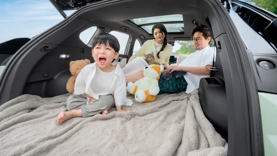 春游出门,还怕后备厢装不下、后排坐着憋屈。悦意07前后排加起来3米3的大空间,后排坐垫深509毫米,大腿不悬空,坐久了也不累。