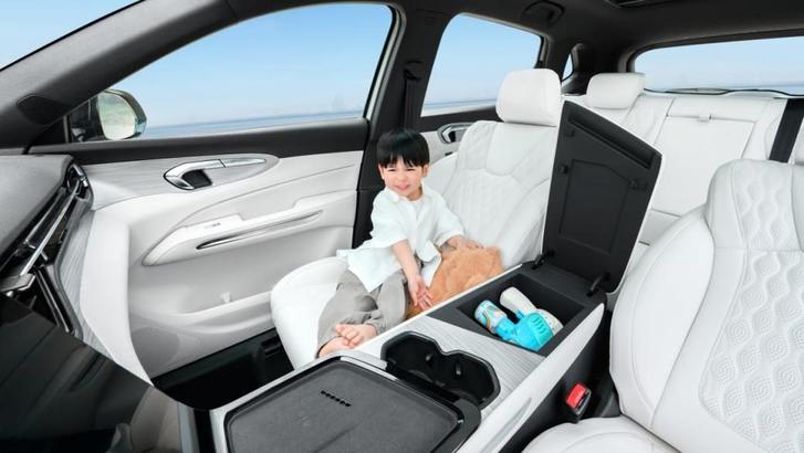 后备厢能装下590升的东西,后排放倒直接变1800升,野营装备、孩子的小车、买菜买的年货,全都能塞下。车里还藏了33个小储物格,水杯、手机、零食都有自己的“座位”。