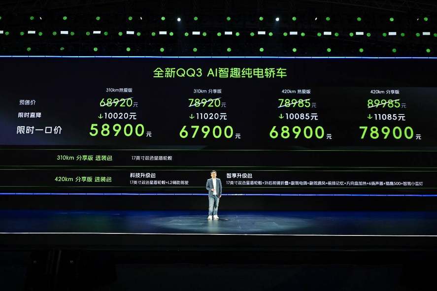 3月30日,奇瑞全新QQ3在成都露天音乐公园举办上市发布会并公布售价,新车共分为4款不同配置车型,限时一口价为5.89-7.89万元之间。