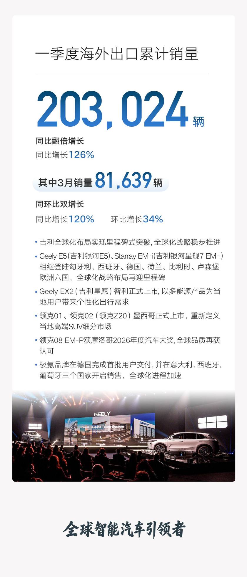 吉利汽车2026年3月及一季度销量:逆势增长 全品牌稳健向上