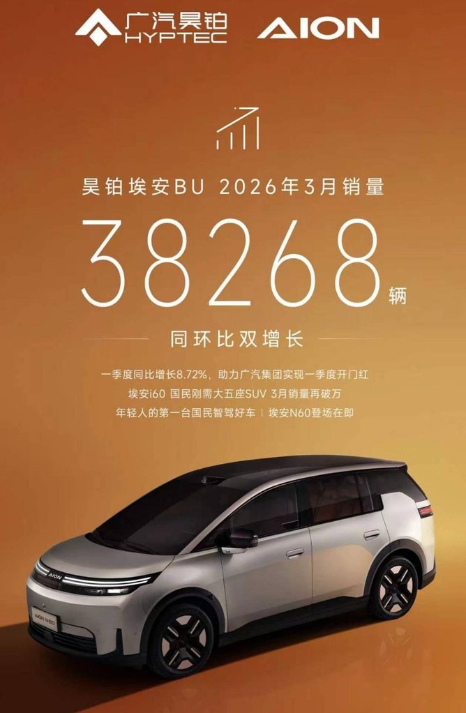马年首季收官,中国汽车市场在春节假期、政策切换及消费预期等多重因素交织下整体承压。就在这样的环境中,昊铂埃安BU却交出了一份令人振奋的成绩单:3月终端38268辆,同比增长12.28%,环比增长231.38%;1-3月销量合计75389辆,同比增长8.72%,实现一季度开门红,已成为广汽集团新能源板块的重要增长极,展现出极强的内生增长韧性与后劲。