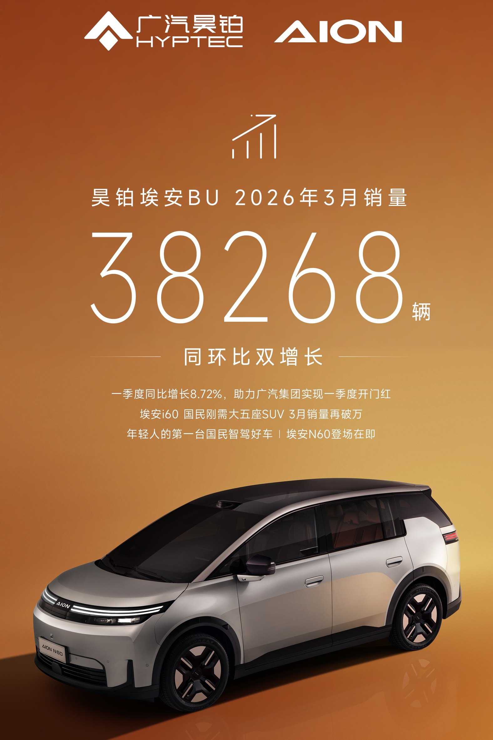 近日,广汽埃安公布数据显示,昊铂埃安BU在3月终端销量达38,268辆,同比增长12.28%,环比增长231.38%;1-3月累计销量75,389辆,同比增长8.72%,成为广汽集团新能源板块的重要增长极之一。