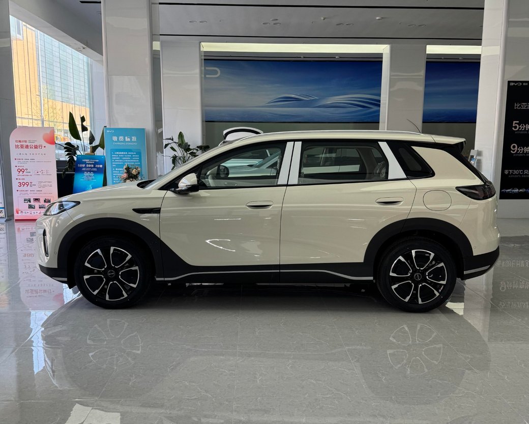 车身尺寸长宽高分别为4620/1860/1630mm,轴距2770mm,相比海狮05EV(长宽高4520/1860/1630mm,轴距2720mm)更大一些。车身侧面延续了海狮05EV饱满且动感的造型,而包括悬浮式车顶、半隐藏式门把手、流畅的侧裙熏黑饰板等也均没有缺席。不过将换装全新18英寸双色花瓣式轮毂,而除钧窑灰、海域白、沐川青、暖阳白外,还将提供海贝粉、珊瑚橙两款新配色。