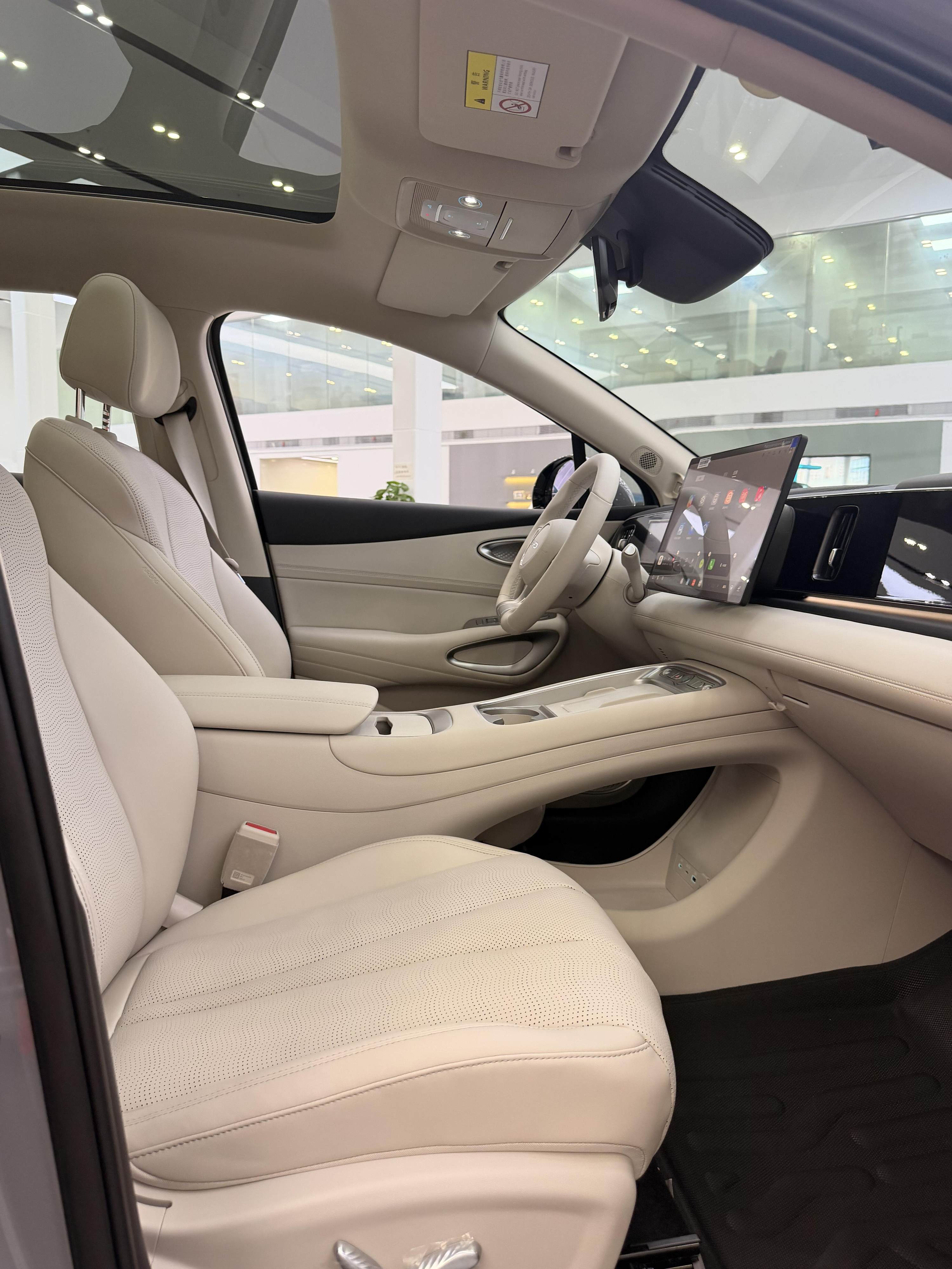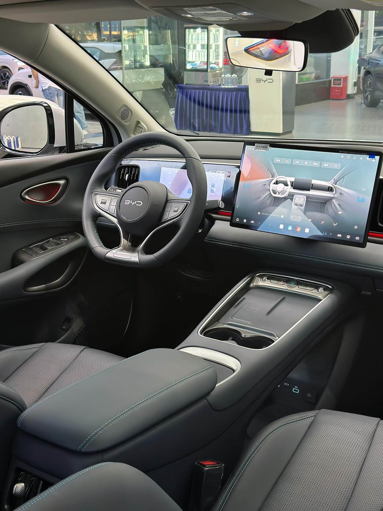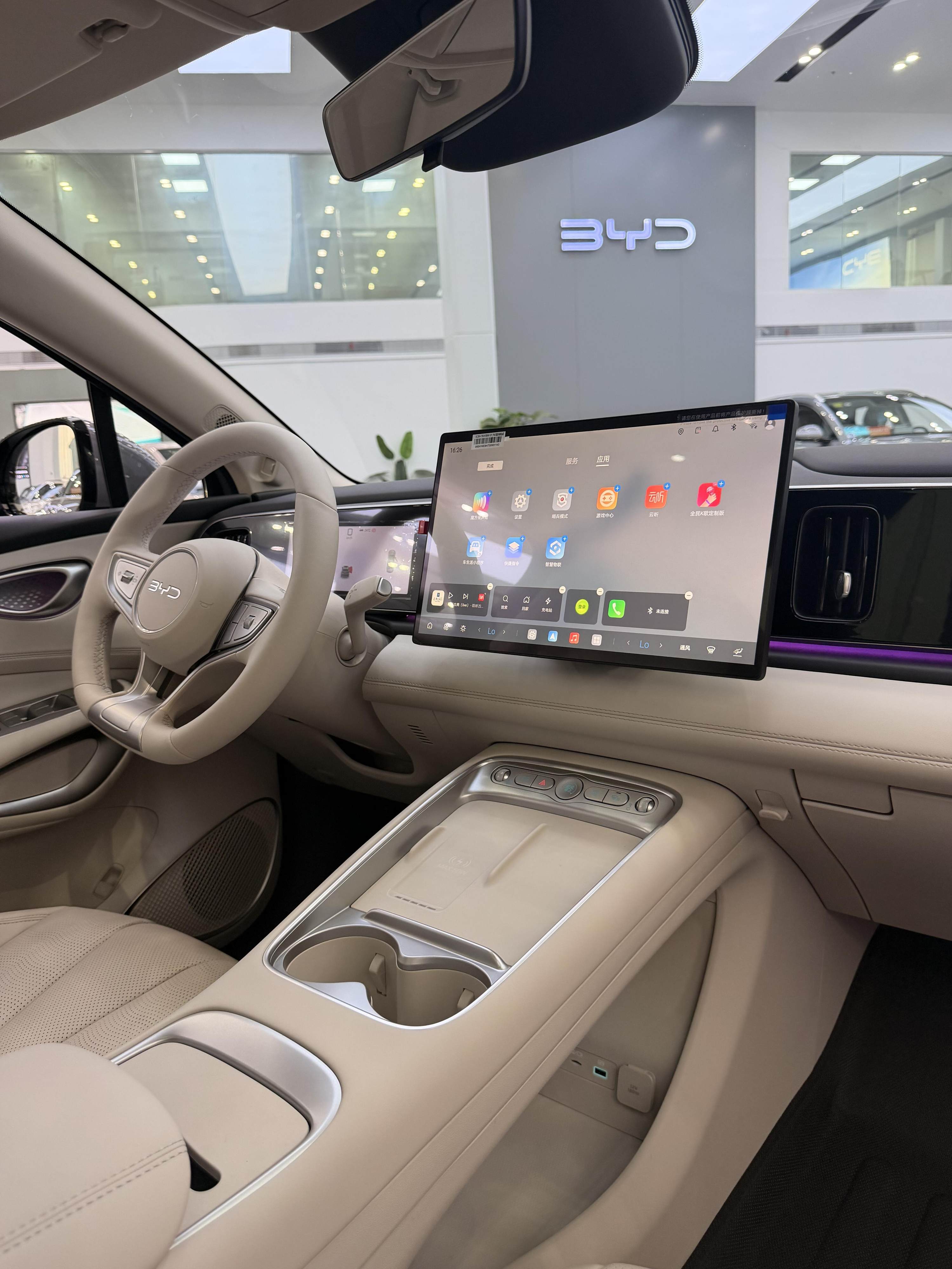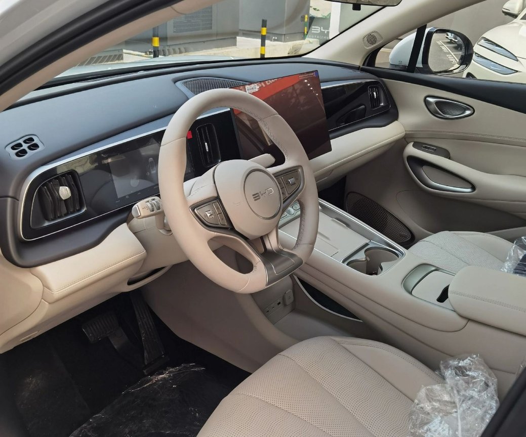 内饰也是海狮05EV的那一套设计语言,环抱式的中控台上通过熏黑钢琴烤漆饰板贯穿,并内嵌8.8英寸仪表屏。不过将升级15.6英寸悬浮式中控屏,并搭载最新DiLink智能座舱系统。另外还将提供杏仁米、暮色蓝两种风格,采用全新三幅式平底多功能方向盘+电子怀挡,镂空副仪表台上依次配备一排物理按键、50W手机无线快充、双杯架、纸巾盒,扶手箱内还有望提供智能冷暖冰箱。