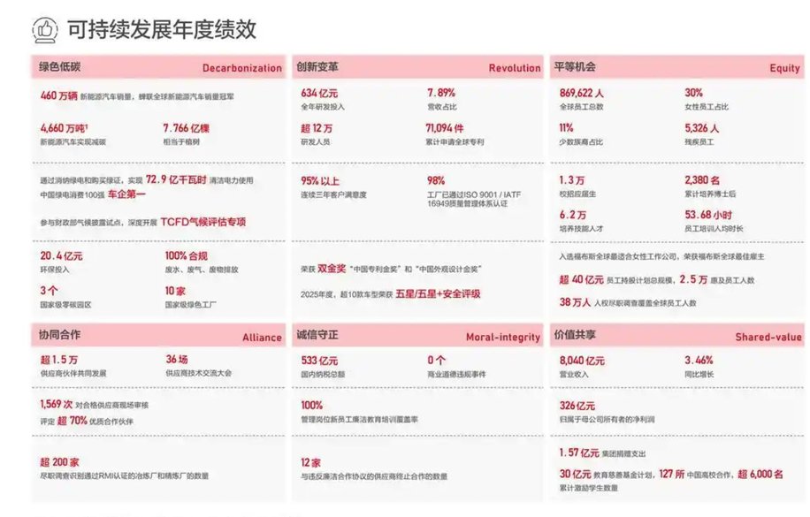 ESG不只是冰冷的减排数字,更是有温度的企业担当。报告显示,比亚迪2025年纳税总额达533亿元,捐赠支出1.57亿元。尤为引人注目的是其30亿教育慈善基金,通过与127所高校合作,精准激励新能源技术人才。这种对教育的投入,实际上是在为整个行业的未来“育种”。同时,作为“全球最佳雇主”,比亚迪对员工多元共融的关注,也为其在全球化扩张中赢得了尊重与口碑。
